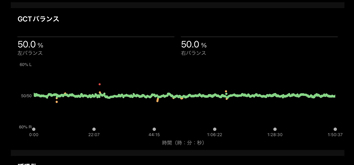 私が普段ランニングで使用しているスマートウォッチには、接地時間バランス (GCT バランス) を測る機能がついています。これは足の接地した時間を監視することで、左右の足がバランスよく着けているのかを見る指標となります。