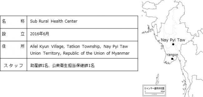 新しく建設された助産診療センターは、首都ネピドー北部にある農村地域のアレージョン村に位置します。出産のための病院が遠方であることなどから、ミャンマー保健省の要請で同村での開設を決定しました。センターでは助産師が常駐し、出産時の分娩介助を行うほか、簡易な治療や妊産婦や村人への継続的な保健教育を行います。これにより、出産や育児に関しての理解が深まるとともに、より安定した母子健康のためのサポートが実現可能となります。