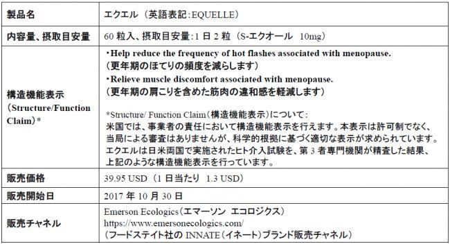 大塚製薬株式会社(本社:東京都、代表取締役社長:樋口達夫)の米国子会社フードステイト社(本社:米国ニューハンプシャー州、CEO:ロバート・クラヴェン)は、更年期女性の健康に貢献するエクオール含有食品「EQUELLE (エクエル)」を米国の医療従事者向け販売チャネル(Emerson Ecologics)を通じて10月30日より販売を開始しました。本製品の海外における販売は初めてとなります。