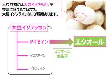 エクオールは、大豆を摂取することで、大豆イソフラボンの一つであるダイゼインから腸内細菌の働きによって産生される代謝物です。大豆や大豆イソフラボンの摂取は女性の健康維持・増進に貢献することが期待されていますが、米国人の食生活では大豆を摂取する機会が少ないうえ ※1、体内でエクオールを産生できる人の割合は約20~30%にとどまるといわれています※2 。
