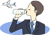 「旅行者血栓症(エコノミークラス症候群)」の原因として、航空機内などの乾燥した空間の条件や、低い気圧によって体内の水分が蒸散しやすくなり、血液の粘度が上昇してしまう条件が考えられます。水分の摂取不足や、アルコール等利尿作用のある飲料の摂取なども脱水傾向を招き、血液粘度を上昇させるリスクとなります。