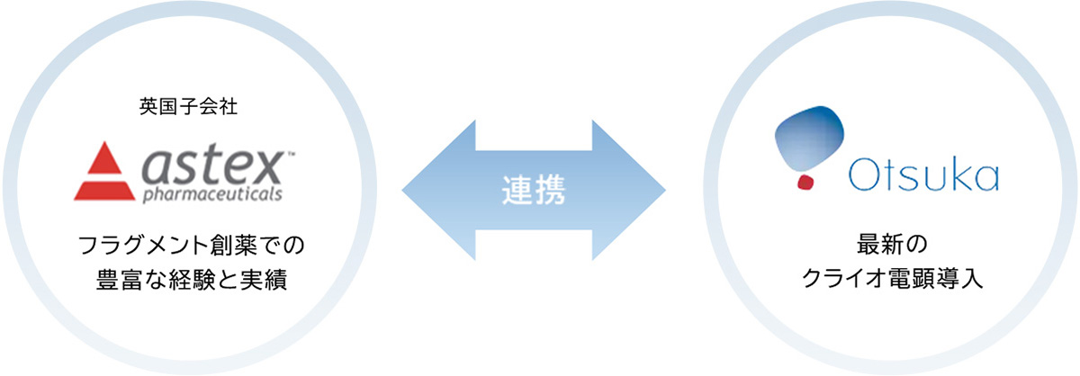 大塚製薬の英国子会社アステックス社が2016年に欧州クライオ電子顕微鏡コンソーシアムに中心企業の1つとして参画し、クライオ電子顕微鏡を利用した創薬を本格的に開始しました。2017年にはアステックス社がクライオ電子顕微鏡を導入し、現在では豊富な経験と実績を有しています。